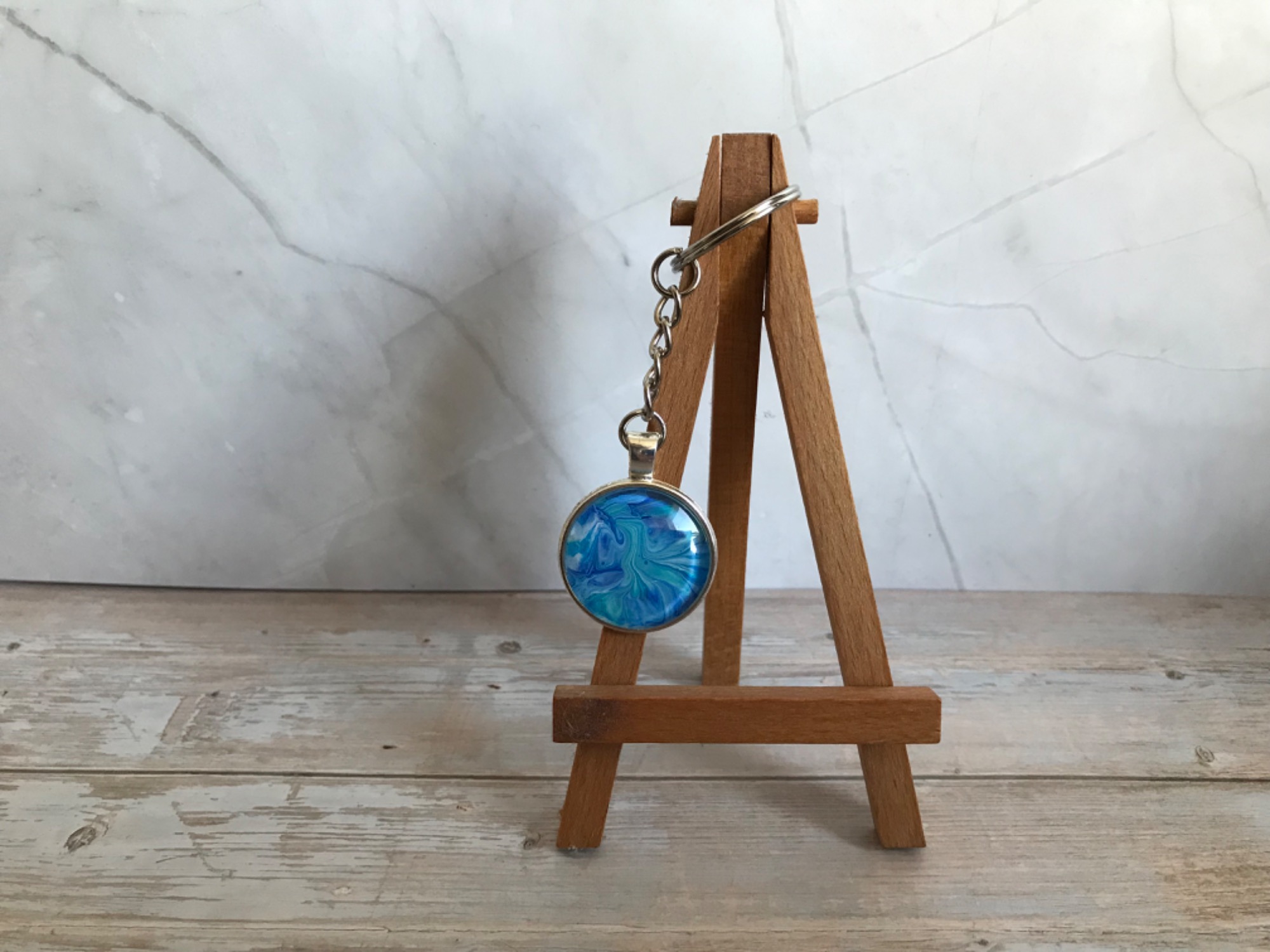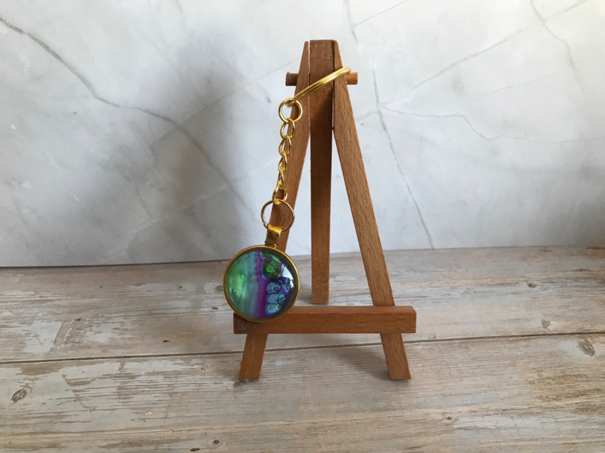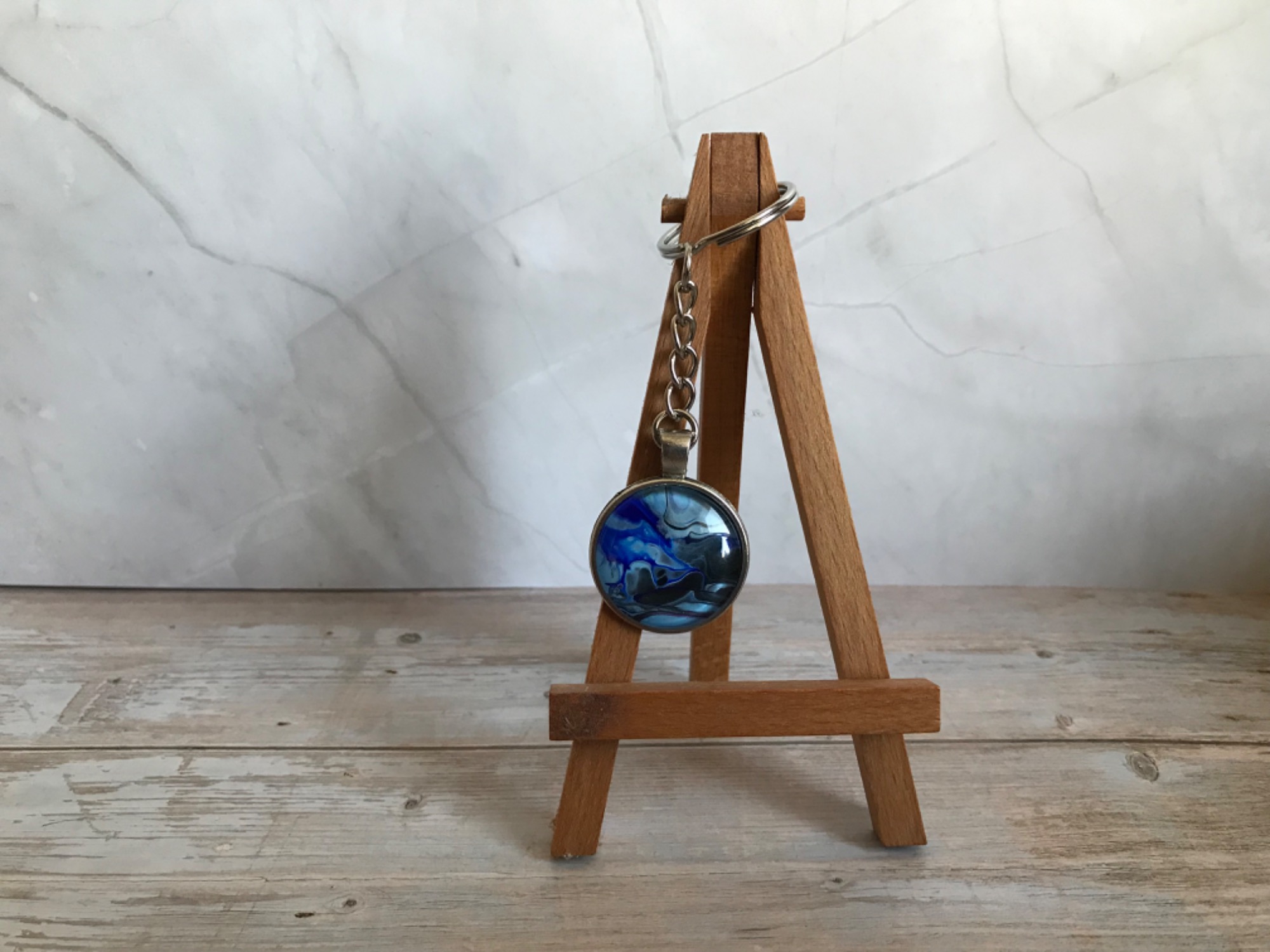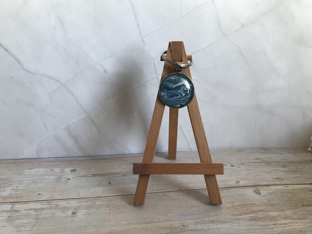 Neben Karten und Bildern entstehen bei Lil Art auch kleine, besondere Geschenkartikel. Dazu gehören Lesezeichen, Schlüsselanhänger und dekorative Blumentöpfe, die mit Acrylic Pouring, Alkoholtinte oder anderen kreativen Techniken gestaltet werden.