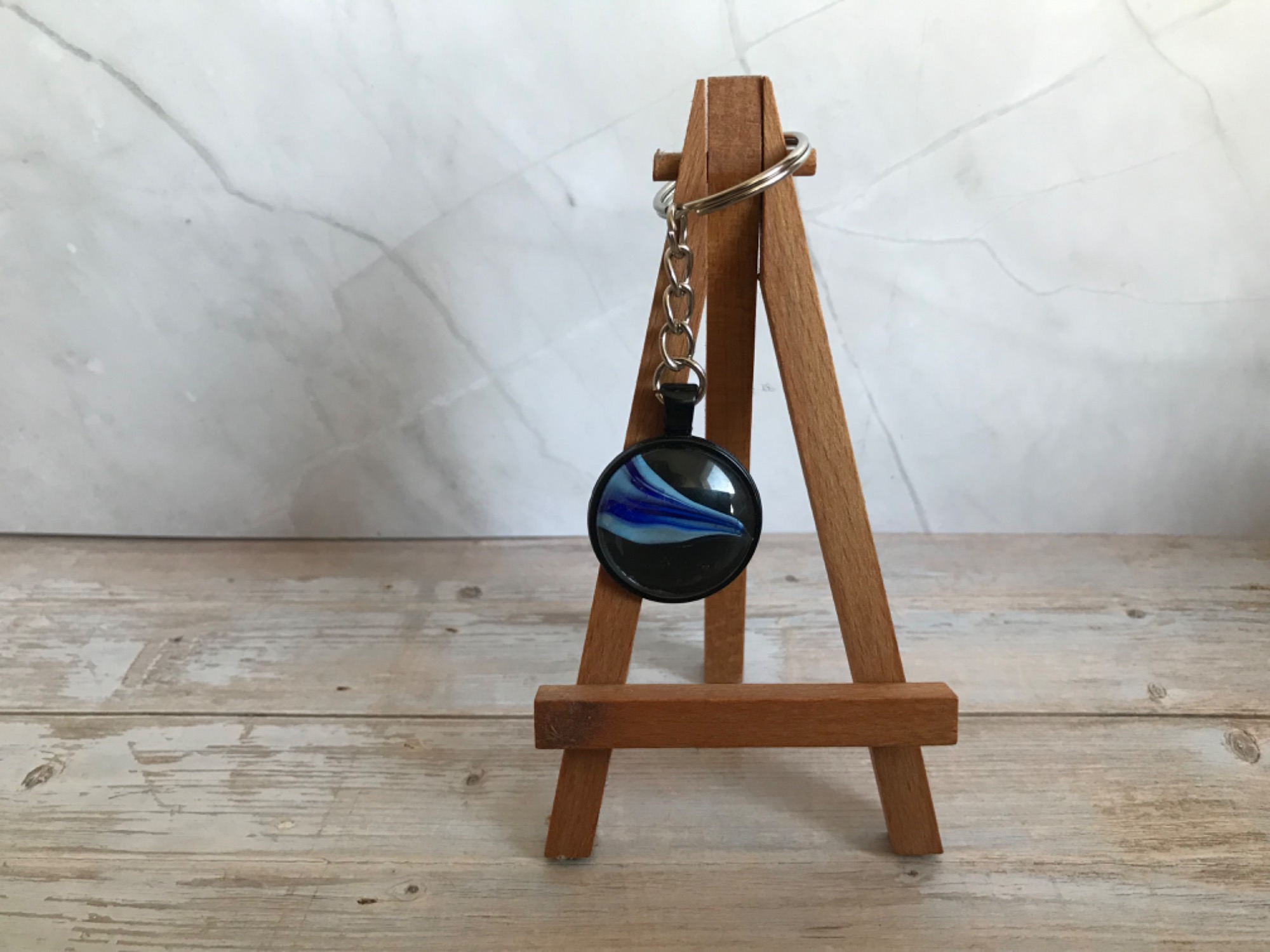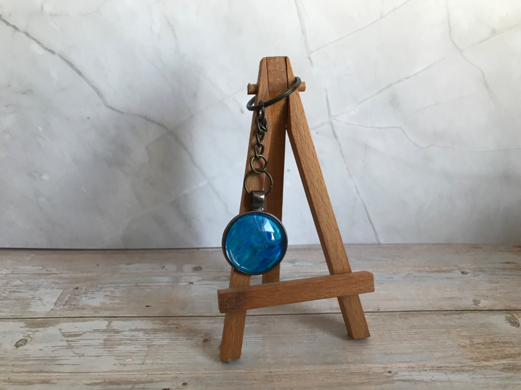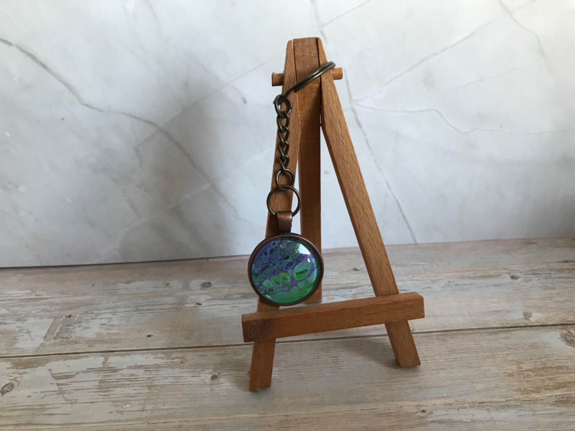 Neben Karten und Bildern entstehen bei Lil Art auch kleine, besondere Geschenkartikel. Dazu gehören Lesezeichen, Schlüsselanhänger und dekorative Blumentöpfe, die mit Acrylic Pouring, Alkoholtinte oder anderen kreativen Techniken gestaltet werden.